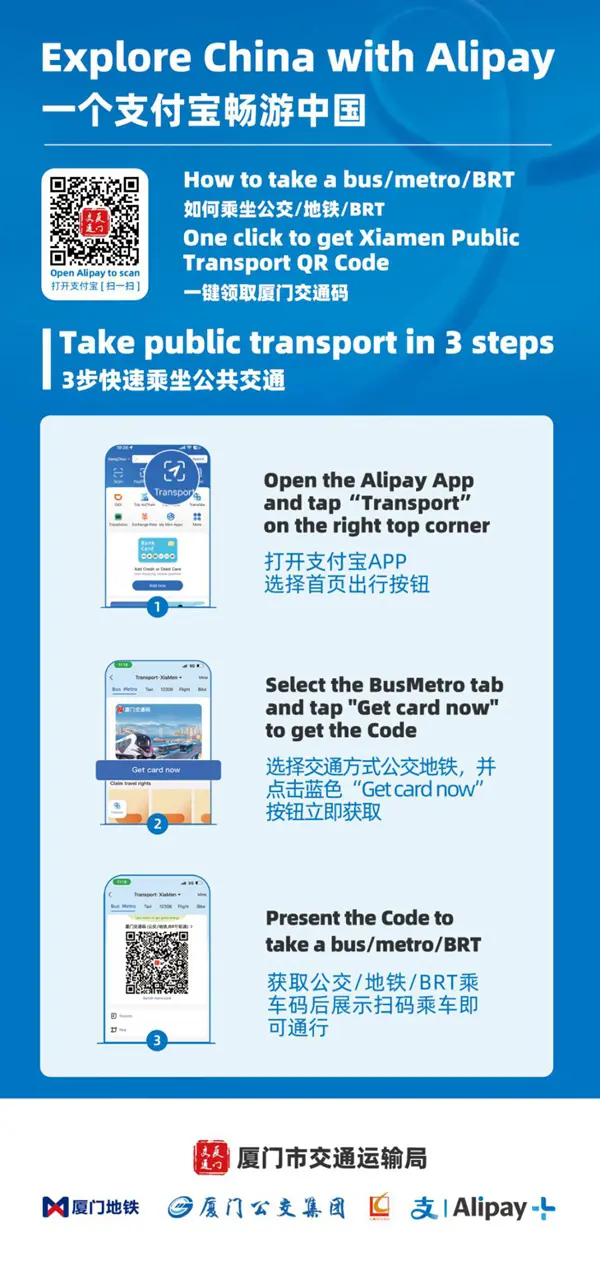 With this QR code, visitors can easily travel across five major transport modes in Xiamen, including: